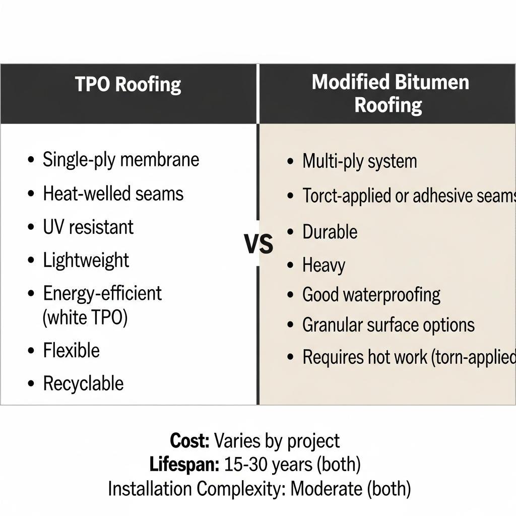 Thermoplastic Olefin (TPO) is hailed as a single-layer roofing membrane known for its exceptional energy efficiency alongside a robust structure. Characterized by its light-colored reflective layer, TPO aids in decreasing energy expenses related to cooling in commercial spaces. The lightweight nature and straightforward installation methodsâoffering options for mechanical fastening or adhesive applicationâgrant versatility throughout the installation process. Additionally, TPOâs resistance to UV radiation and various chemicals ensures extended durability while requiring minimal upkeep.